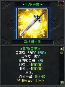 ¡Ø ãêÃÊ¿ùº¸¿ÁÀº Áö±Þ ½Ã 10°ÈÀÇ ¹«±â·Î Áö±ÞµÇ¸ç Âø¿ë ½Ã  ü·Â +1,000,000 /  ³»°ø +1,000,000ÀÇ È¿°ú¸¦
