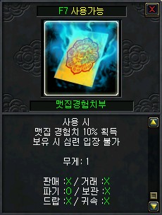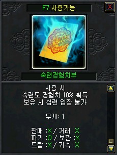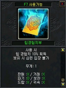 - »ç¿ë ½Ã ÇØ´ç ´É·ÂÄ¡ °æÇèÄ¡ +10% »ó½ÂµË´Ï´Ù. [ÃÖ´ë ´É·ÂÄ¡ ¼öÄ¡ÀÏ ¶§ »ç¿ë ºÒ°¡]