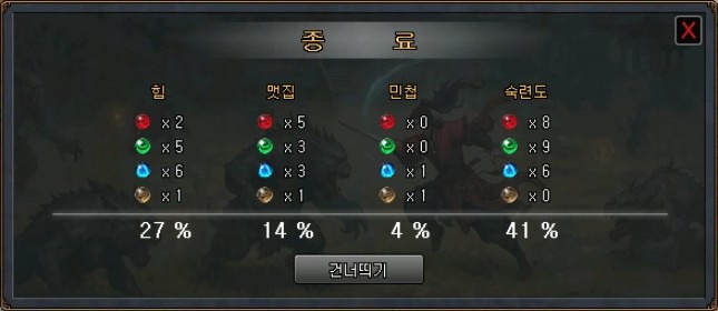 [ij¸¯ÅÍ Èû / ¸ËÁý / ¹Îø / ¼÷·ÃµµÀÇ ¼ø¼ö ´É·ÂÄ¡ Á¤º¸] & [ȹµæ ±¸½½ °æÇèÄ¡ Á¤º¸] ¸¦ ±â¹Ý »êÁ¤ ÈÄ