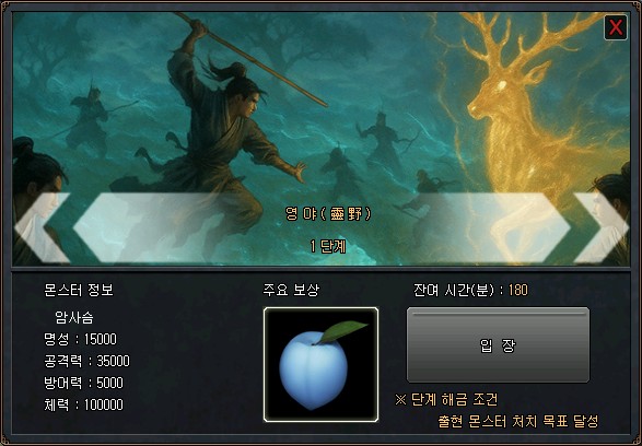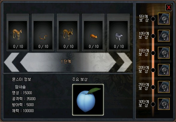 - ¿ìÃø ¾ÆÀÌÄÜ Å¬¸¯ ½Ã ´ÙÀ½ ´Ü°è ÇØ±Ý Á¶°Ç ´Þ¼º Á¤º¸(¸ó½ºÅÍ Ã³Ä¡ ¼ö) È®ÀÎ °¡´ÉÇÕ´Ï´Ù.
