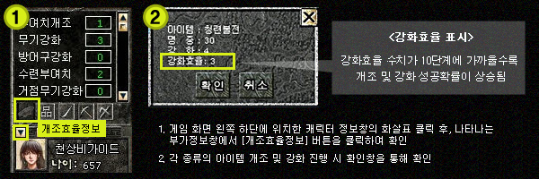 ¾ÆÀÌÅÛ °³Á¶ ¹× °È¸¦ ÁøÇàÇÒ ¶§¸¶´Ù È¿À²µµ °æÇèÄ¡¸¦ ȹµæÇÏ¿© ´Ü°è°¡ »ó½ÂµÇ¸é, °³Á¶ ÁøÇà ½Ã ¼º°ø È®·üÀÌ »ó½ÂµË´Ï´Ù. È¿À²µµ´Â 0´Ü°èºÎÅÍ 10´Ü°è±îÁö Á¸ÀçÇϸç, ¾ÆÀÌÅÛÀÇ °³Á¶ ¹× °È ÁøÇà ¼º°ø ¿©ºÎ¿Í °ü°è ¾øÀÌ È¿À²µµ °æÇèÄ¡¸¦ ȹµæÇÒ ¼ö ÀÖ½À´Ï´Ù.