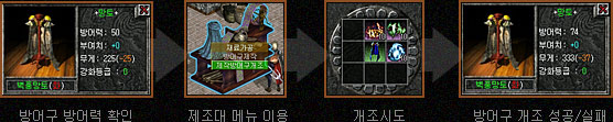 | Á¦ÀÛ ¾ÆÀÌÅÛ °³Á¶´Â ¾ÆÀÌÅÛ ÀÚüÀÇ °ø°Ý·Â°ú ¹æ¾î·ÂÀ» °³Á¶ÇÏ¿© ÇÑ ´Ü°è À§ÀÇ ¾ÆÀÌÅÛÀ¸·Î »ó½Â½Ãų ¼ö ÀÖ´Â ºÎºÐÀÔ´Ï´Ù. |