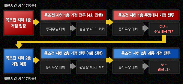 6. À°Á¶Àü ÁöÇÏ 2Ãþ °ÅÁ¡ ÀüÅõ¸¦ 4ȸ ¸ðµÎ ¿Ï·áÇÑ ÈÄ, ±«·æ °ÅÁ¡ Áö¿ªÀ¸·Î À̵¿ÇÏ¿© µ¿ÀÚ¹«½Â°ú [´ëÈ]·Î ´ëÈÇÕ´Ï´Ù. |
