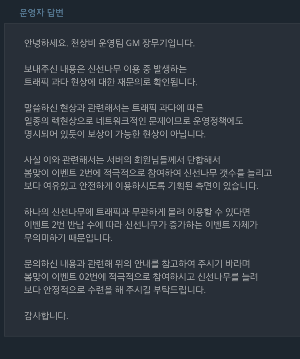 ±Ù7³â°£À» õ»óºñ¸¦ ÇØ¿Â À¯ÀúÀԴϴ٠Ưº°ÇҰ͵µ ¾ø°í Àû´çÈ÷ Áñ±â´Âµ¥ °¡¸é°¥¼ö·Ï ¹«ºÐº°ÇÑ À̺¥Æ®¿¡ À¯Àú¸¦ ¿ì·ÕÇÏ´Â ±âºÐ¸¶Àúµå´Â ¿î¿µÁøÃø¿¡ Ȱ¡³ª¼ ¿Ã·Áº¾´Ï´Ù. Àü Àϸ¶Ä¡°í¿À¸é ±âº»7½ÃÀÔ´Ï´Ù..±×·±µ¥ ¸Å¹ø ¹¹Àâ¾Æ¶ó ¹¹Àâ¾Æ¶ó °ÔÀÓ¸¶Àú Á߳뵿À» °¿äÇմϱî À̺¥Æ®µµ °¥¼ö·Ï º¹ÀâÇϰí.. ±×°Ç ±×·¸´ÙÄ¡°í ½Å¼±³ª¹« ±Ùó°¬´Ù°¡ ºÀº¯´çÇϰí Á¢¼ÓºÒ´É »óűîÁö °£°Ç ¾îµð°¡¼ ¹®ÀÇÇѴܸ»Àΰ¡¿ä (ij¸¯ÅÍ Á¢¾Æ¿ôµÇ°í 2½Ã°£³Ñ°Ô Á¢¼Ó ¾ÈµÇ¼ °Á ÀÚ¹ö·È½À´Ï´Ù.) Âü ¸Å¹ø °¡¸¸ÀÖÀÚ´Ï ¾îÀ̰¡¾ø³×¿ä.. ¹Ù¶ó°Çµ¥ ±âȹÀ» ÇØ³õ°í ´ëóÇÏÁö¸»°í ÄÄÇ÷¹ÀαîÁö Á» »ý°¢ÇÏ°í ±âȹÇϼÌÀ¸¸é ÇÕ´Ï´Ù. Æ®·¡ÇȰú´Ù·Î ÀÎÇÑ ¼¹öÁ¢¼Ó ºÒ°¡¶ó´¢.Á¦°¡ °ÔÀÓÀ» ÇØºÃ¾îµµ ÀÌ·±È²´çÇѰæ¿ì´Â óÀ½Á¢Çغ¾´Ï´Ù.. À̺¥Æ®¸¦ ÇÏ´Â ÃëÁö´Â ÁÁ½À´Ï´Ù..À¯Àú°¡ ÇÇÇØ¸¦ ÀÔ´Â°Ç ¾ø¾î¾ßÁÒ ±×·±ÀÏÀÌ ÀÖÀ¸¸é º¸»óÇØÁÖ´Â°Ô ÀÌÄ¡°í¿ä. ´äº¯º¸¸é ²À À¯Àú°¡ ÇÇÇØ¸¦ ¹Þ°Ç ¸»°Ç ¾î¿¼ö ¾ø´Ù´Â ½ÄÀÌ´Ï ÀÌ°Ô ¿ì·ÕÀÌ ¾Æ´Ï¸é ¹¼´Ï±î |