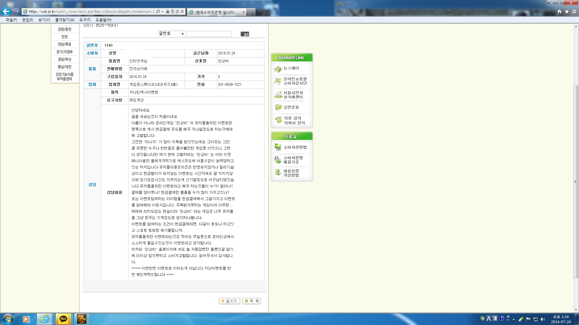 ¼ÒºñÀÚ¿¬¸Í¿¡ °í¹ßÇÞ½À´Ï´Ù