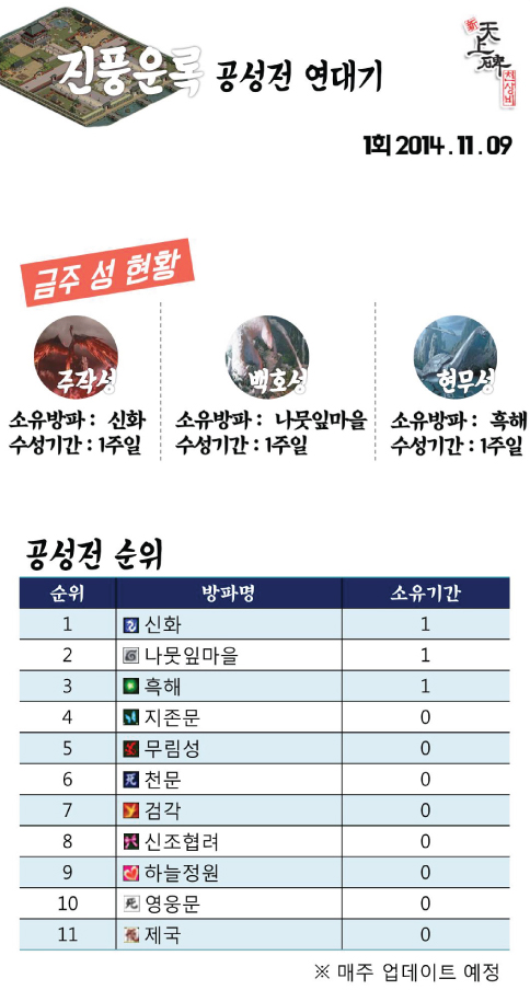 Èı⸦ ¸¶¹«¸®ÇÏ¸é¼ ½ºÅ©¸°¼¦ ÇÑÀå ¿Ã¸³´Ï´Ù. ¸®´º¾ó ÀÌÈÄ ÁøÇ³¿î·Ï ¼¹ö¿¡¼ ÁøÇàµÇ´Â °ø¼ºÀü ±â·ÏµéÀ» ¸ÅÁÖ ±â·ÏÇÏ·Á ÇÕ´Ï´Ù. Ã౸µç ¾ß±¸µç ¸®±×¼øÀ§ º¸´Â °ÍÀÌ °æ±âÀÌ¿ÜÀÇ Àç¹Ì¿ä¼Ò°¡ µÉ ¼ö ÀÖµíÀÌ Ãµ»óºñÀÇ °ø¼ºÀü ¶ÇÇÑ ¸¶Âù°¡Áö ¶ó°í »ý°¢Çؼ ½ÃÀÛÇÏ°í ½Í¾ú½À´Ï´Ù.